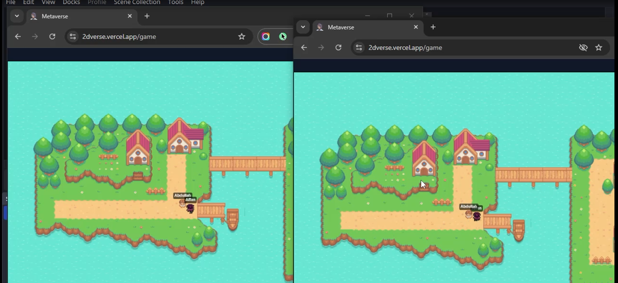 An 2d Virtual world , where players can interact with other users using voice chat, characters, etc.